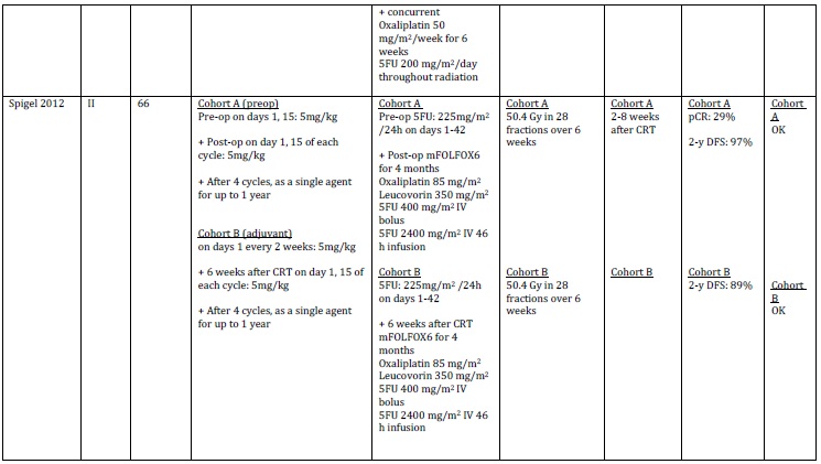 Table 1. Clinical Trials with Bevacizumab for Patients with Locally Advanced Rectal Cancer