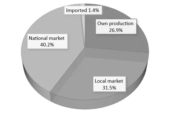 As shown in Figure 2, 58.4% of the products consumed by families were locally sourced, 40.2% were of national origin, and only 1.4% were imported.