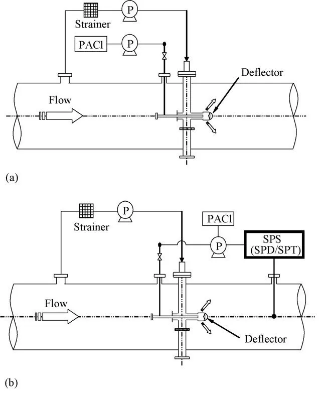 In many of the conventional WTPs, the coagulant mixing is typically performed in a concrete basin with a mechanical mixer, and requires about 1—2 min of retention time. Mechanical mixing with a longer retention time cannot guarantee an instantaneous and uniform coagulant dispersion. For this reason, the so-called PDM has been proposed. PDM is a reasonable method and also has the potential to solve problems, such as noise, energy waste, and high maintenance cost, related with the use of a mechanical mixer. Using various rapid mixing devices to test the sedimentation performance, it was shown that in-line hydraulic jet and static mixers were able to achieve performance equivalent to that of the mechanical mixing type at a lower coagulant dosage. Manufacturers have suggested the pressurised/main inlet water flow-rate ratio (pumping rate) as the most important parameter. It was recommended that the flow-rate ratio should be in the range of 8—10% in order to guarantee uniform coagulant dispersion in PDM. Recently, the PDM has been introduced for the rapid and complete dispersion of a coagulant within a second before the metal hydroxide precipitate has been formed. The PDM is an effective device for the quick dispersion of hydrolysing metal salts.