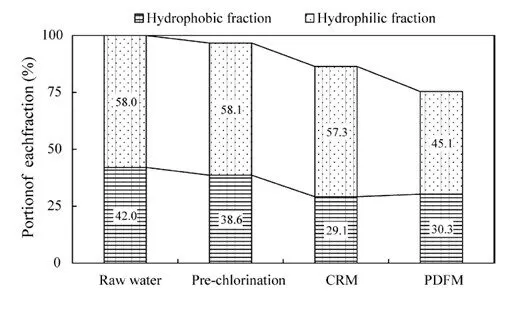 Fig. 12. Distribution of NOM Isolated from Raw and Treated Waters (Kim and Lee (2006)).