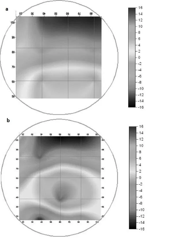 Fig. 7. Zeta-Potential Distribution Pattern in the Case of Pumping Rate 2%. (A) The Pressurised Water Flow Rate: 130 M3 Hr-1, The Main Inlet Water Flow Rate: 3,250 M3 Hr-1. (B) The Pressurised Water Flow Rate: 65 M3 Hr-1. The Main Inlet Water Flow Rate: 1,625 M3 Hr-1 (Park Et Al. (2009)).