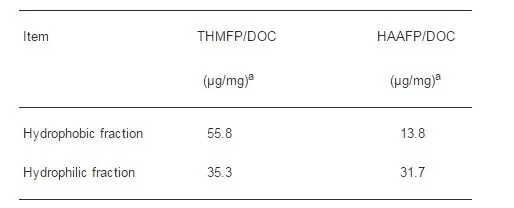a Concentrations of THMs and HAAs produced to DOC of each NOM fraction in solution used for DBPFPs test, respectively.