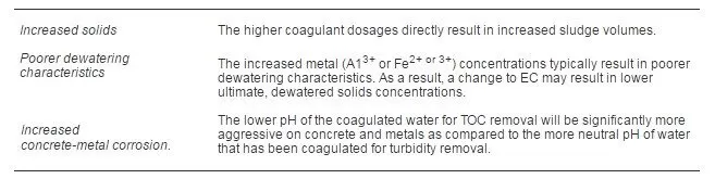 However, there are a number of secondary impacts of utilising the higher coagulant dosages and lower pH values for EC. A few of these impacts are summarised in Table 5.