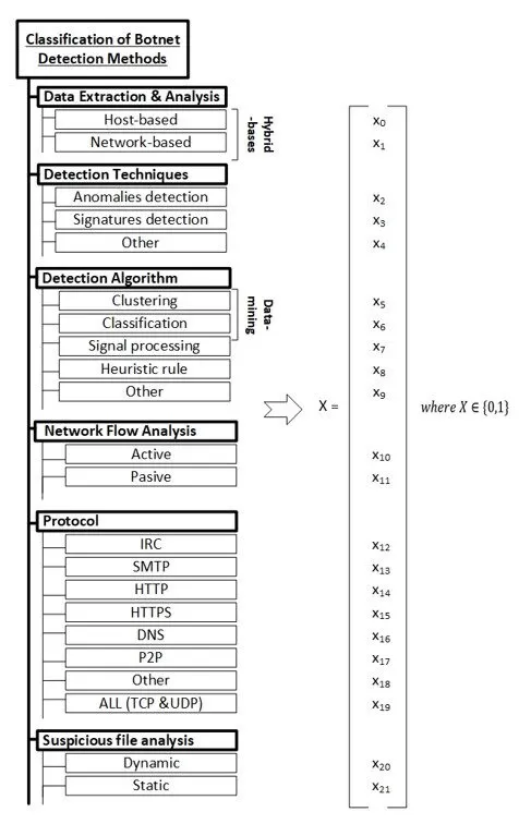 Table 1 contains all the methods described above, classified using the proposed scheme of the classification criteria. It is possible to describe every botnet detection method using a previously described vector of attributes’ values.