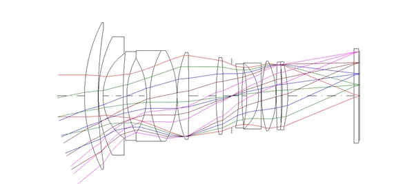 Fig. 1. The optical system of designed IRIX photographic lens f = 21 mm.