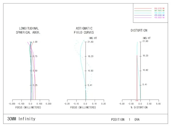 Fig.3. Aberrations and geometric distortion of the 21mm optical system.