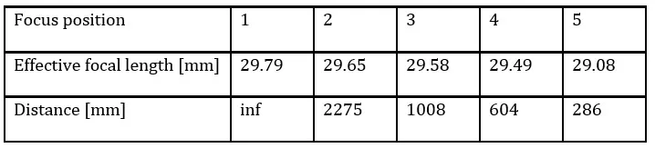 Table 1. Result of simulation tests of the 30 mm optical system. Focal length measurement.