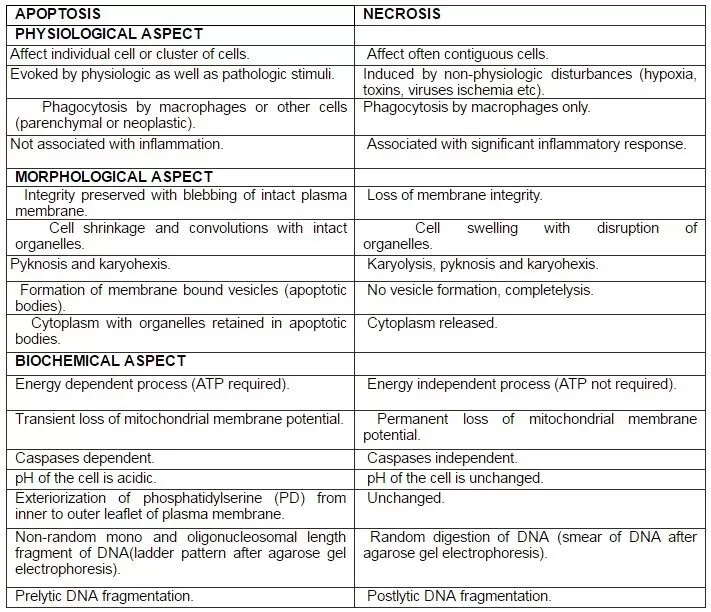Figure 1: Showing Difference between Apoptosis and Necrosis