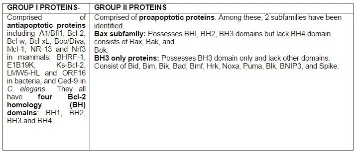 Table 2: Showing Classification of Bcl-2 Family Proteins: Depending upon their Function Domain Present
