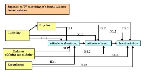 H1: Perceived endorser credibility has a positive significant effect on: • H1.1. the attitude towards the advertising, • H1.2 the attitude towards the brand, and H1.3 the intention to buy. H2: Endorser expertise has a positive significant effect on: • H2.1. the attitude towards the advertising, • H2.2. the attitude towards the brand, H2.3. the intention to buy.