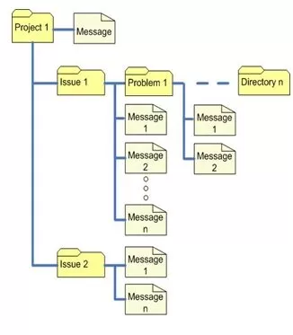 The following example is showing the directory of invented tree. Communication can be divided into directories, which can contain an unlimited number of subdirectories and their messages containing text are the last degree. The example shows that Project 1 contained three tasks that had to be addressed and solutions had to be discussed or reported. In addressing task 1 were two problems that had to be managed. Messages are automatically stored in the allocated space. Therefore if the user does not have to deal directly with the task No. 1 he does not have to read the reports appearing in other directories. If the user deals directly with this problem, he will immediately know that a new message appeared in the email comment on this topic. Alternatively, if there is a need to invite another user to help to solve the problem 1 in task 1, this user will be given the availability to see only the communication about task 1 or for the problem 1.