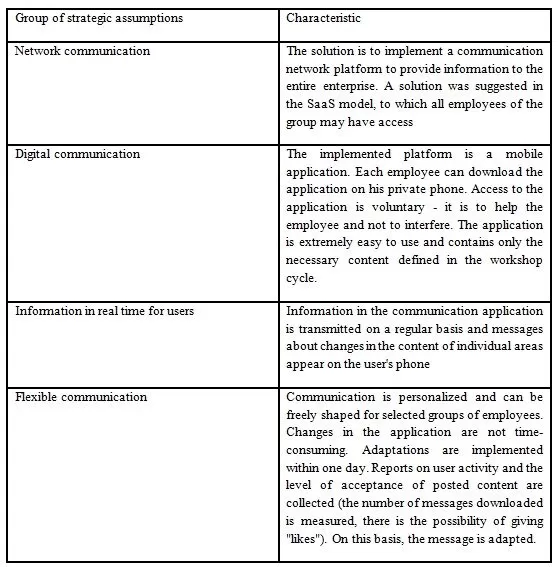 Table 2: Strategic assumptions in implementation of new communication solutions