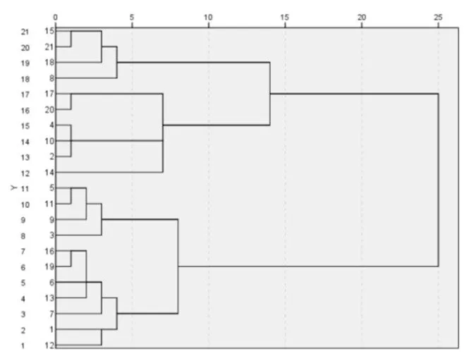 The analysis of the proper research results included the cluster analysis (Ketchen & Shook, 1996). The choice of the optimal number of clusters is usually unclear – the most popular methods vary from 2 to 4 clusters. However, the biggest cognitive value and distance between clusters may be observed for 3 clusters. Therefore, the authors made the decision to establish the number of clusters at 3. This choice was also confirmed by creating a dendrogram (the use of a hierarchical cluster analysis, Ward’s method) (figure 1).