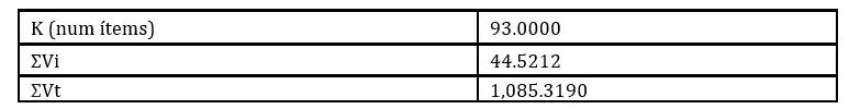 The resulting coefficient is 0.9694, which indicates that the reliability of the survey is high. This result was calculated thanks to the following data: