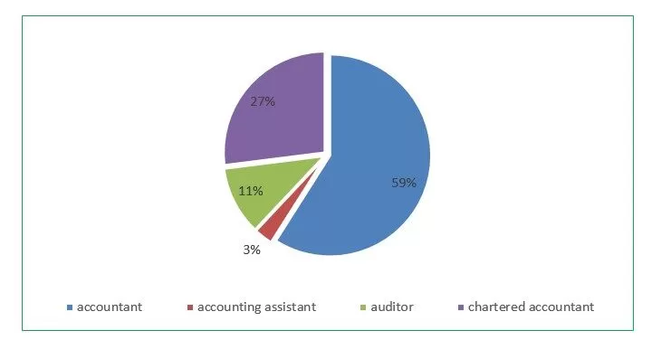 3% of the respondents interviewed in the firms through this survey are accounting assistants, 11% of the respondents are auditors, 27% of the respondents are chartered accountants and 59% of the respondents are accountants.