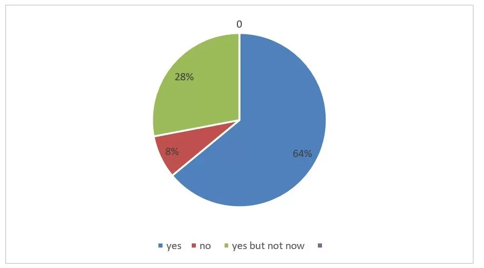The results show that for the 48% who answered positively the previous question, 8% are not willing to spend a budget to do training on the use of software, 28% are in favor of training on the use of software but not now and 64% of these respondents reply that they are able to spend a budget to start training on the use of software.