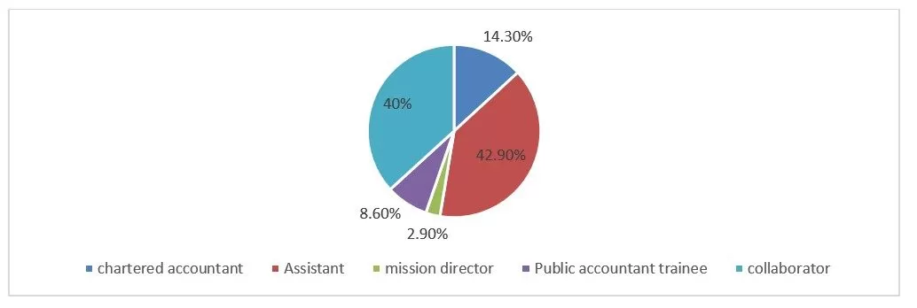 Concerning the positions occupied by respondents, the results show that 42.9% of the respondents are assistants, 40% of the respondents are collaborators, 14.3% of the respondents are chartered accountants, 8.6% of the respondents are public accountant trainees and 2.9% of the respondents are directors of audit missions.