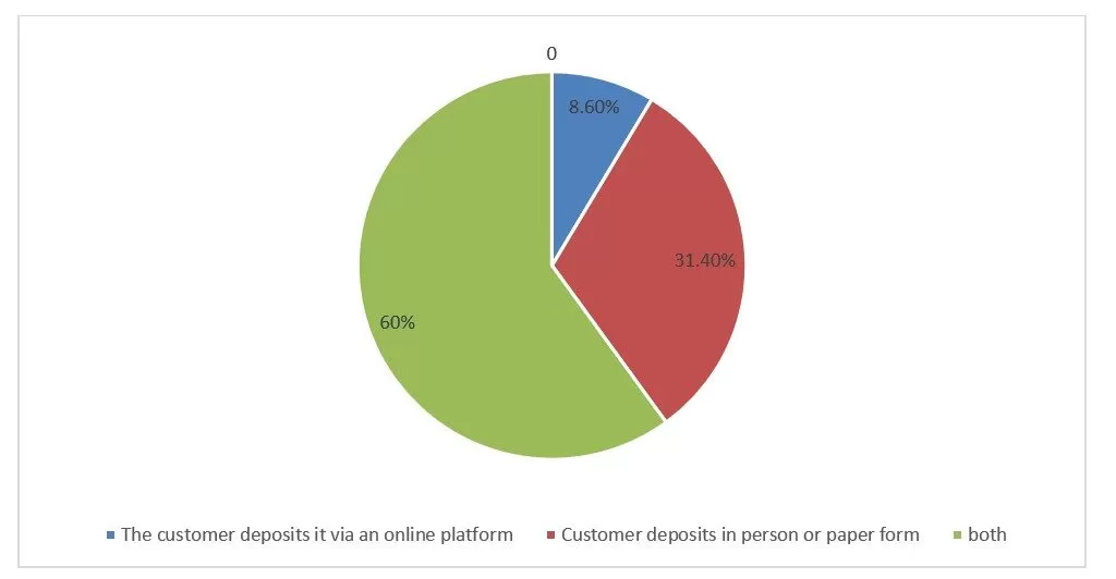 Regarding the accounting deposit percentages by clients, the results show that 60% of the respondents file their accounts both on paper and on the online platform of accounting firms that audit them, 31% of the respondents file their accounting on paper with the accounting firms that audit them, while 8.6% deposit their accounting on the online platform.