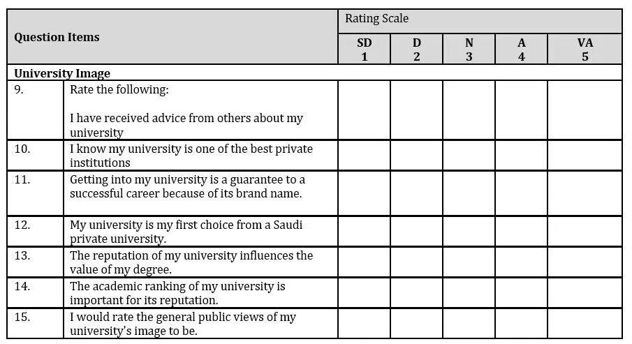According to Ali et al. (2021), the concept of university image pertains to the way the institution is viewed by external and internal stakeholders. Research by Ngwira and Intravisit (2023) illustrates that a university’s image is determined by its trustworthiness, reputation, heritage, and its campus culture. Findings from Mulyono’s (2020) research concluded that university image significantly shapes student satisfaction and loyalty. The research by Paul and Pradhan (2019) also suggested that the university’s reputation, academic rankings, and image are paramount to the formation of a student’s loyalty. In the context of Saudi Arabia, Muhammad et al. (2020) indicate that reputation and trust are fundamental factors in Saudi Arabia where customers mainly rely on recommendations from family and friends. Studies have indicated that the retention and loyalty of students are significantly influenced by the reputation and image of the university. Findings by Ngwira and Intravisit (2023) and Kieng et al. (2021) reported that university image had a strong impact on students’ loyalty.