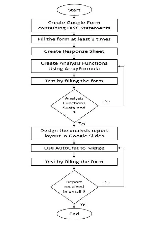 Fig. 1 shows the flowchart of the development of the online DISC personality assessment application using Google Workspace applications.