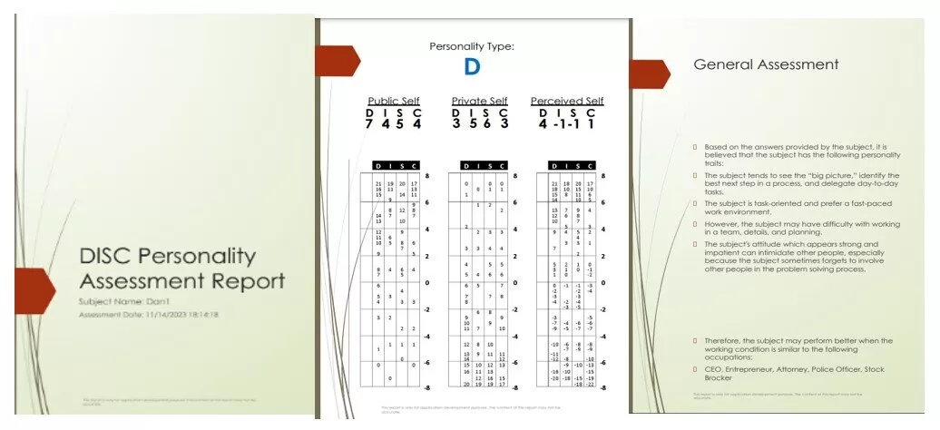 The Author copied the files containing question sheet and formula sheet and developed the application. The online DISC Personality Assessment application was successfully developed. Fig. 4 shows the DISC assessment report prototype developed in this study. The link to the Google Form will be placed at the end of this section. Readers are welcome to try and fill in the form and wait a few minutes before the result reaches your email. It was developed using only the free applications in Google Workspace such as Google Forms, Google Sheets, and Google Slides. It opens the possibilities to using these free applications to create new simple but useful applications. Thus, H1 is supported.