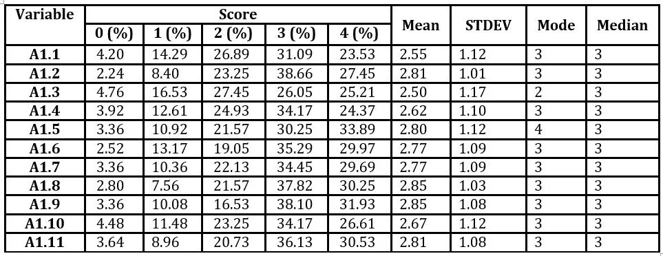 Table 3: Percentages of A1 variable group scores