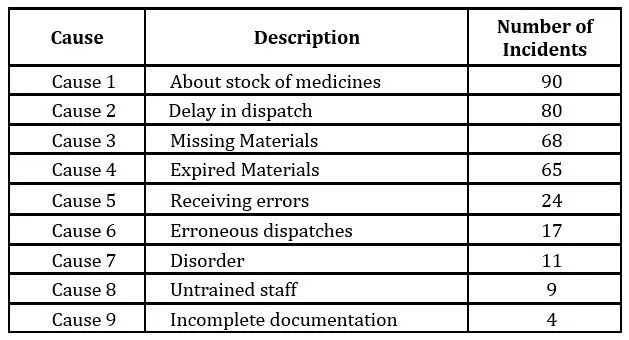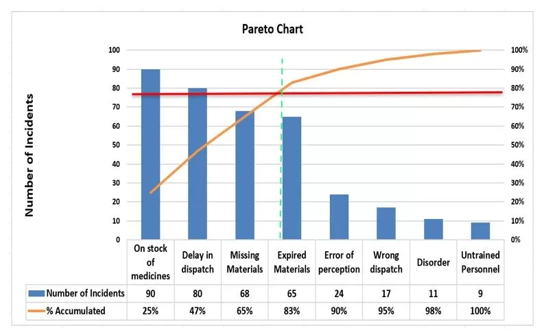 It is recorded in the Pareto chart in figure 3 that the most important causes that generate problems in the processes are stock of medicines, delays in dispatch and missing materials.
