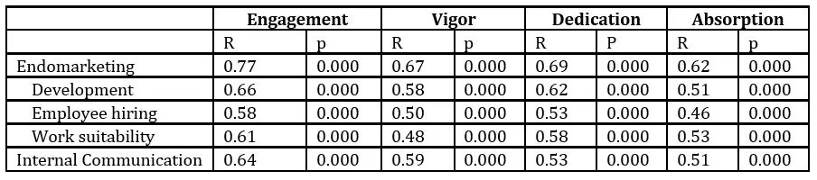 Table 2: Correlation Analysis between Endomarketing and Engagement