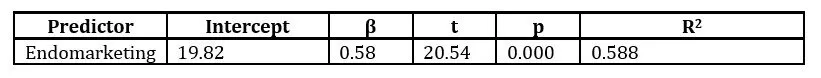 Table 3: Regression Analysis of Endomarketing on Engagement