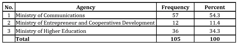 The respondents are middle managers from the group of administrative and diplomatic officers in three ministries at Putrajaya, Malaysia, as shown in Table 1. The survey has been sent to the respective ministry’s human resource division, where they sent it to all of the respondents by email and WhatsApp group of the ministry. The data collection was conducted from early May 2025 until the end of June 2025. The number of respondents from these ministries is 105. The G*Power for this study is 68.