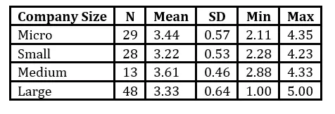 Additionally, ANOVA analyses revealed no significant differences in RfC scores across company size or change experience (p > .05), suggesting that readiness perceptions are driven more by internal mechanisms than structural characteristics.