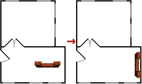 There are other situations where objects may not be placed against walls, such as dining tables or a sofa in front of a TV with no wall behind it. In this last case, to perform this type of placement, real and false walls are used by the algorithm and a set of semantic rules are used. In the sofa and TV example, to determine whether or not false walls are needed, it must first be determined if there is enough space on the existing walls where the objects may fit and at the same time if those walls are not too far from the TV. If there is not enough space using existing walls, then false walls must be calculated. False walls define a 2D bounding box that does not overlap any existing walls, so the objects cannot be placed against its edges neither too far nor too near from the TV.