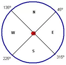 Finally, the creation of the horizon view that will be visible in the 3D final model consists in setting a panoramic image that is wrapped around the exterior of the building, as if one placed a cylinder surrounding the building with a 360º image placed in the inside of the cylinder. There are two different methods to apply the panorama in the model. In the first one, a single image is wrapped around the entire exterior of the building and, in the second, four different images are used with each one being visible to the observer depending on the direction where he/she is looking. In this second method, each image, corresponding to the North, East, South and West views, will be placed in a half cylinder. Fig 18 indicates what image is shown according to the observer’s orientation. For example, if the orientation is between 45 and 135 degrees, the North image is shown.