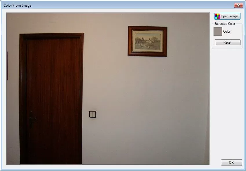 The next figure reveals an image of our prototype extracting the predominant wall colour of the photograph. The user, by opening the photograph, can immediately contemplate the automatically extracted colour.