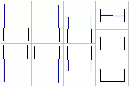 With the potential edges of a window/door and with the horizontal lines, the result of the score can be found. Through the observation of Portuguese floor plans, we have come to the conclusion that the windows are usually represented in four different ways (Fig 7) and the doors in nine ways (Fig 8 )