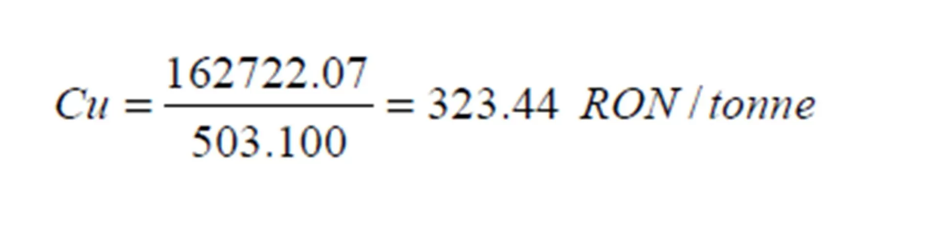 where: BCu is the budgeted cost per unit, is the sum of the total expenses of the three sectors, Q is the physical production (tonnes of mined coal). Replacing the symbols by numbers in relation no. 15, we obtain the budgeted cost per unit, pertaining to a tonne of coal: