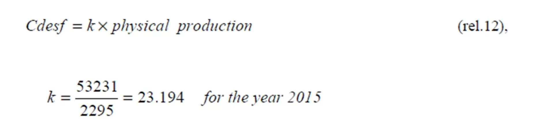 The coefficient of indirect expenses of the production sector “x” has been calculated by reporting the expenses to the distribution base suggested for the economic entity Lupeni Mine — the production volume, since there is a relation of causality between the time needed to obtain coal in a work shift and the expenses to be distributed. For the calculation of the supplementing coefficient, we have used the formula: