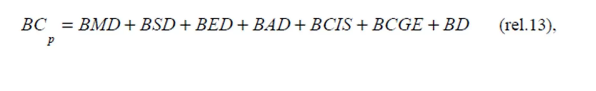 where: BCp — production cost budget; BMD – direct material expense budget; BSD – direct salary expense budget (including salary-related contributions); BED – expense budget for electricity used for operational purposes; BCD – expense budget for technological fuel; BAD – expense budget for the amortization of corporal immobilized assets; BCIS — production-related indirect expense budget of the section; BCGE – general management expense budget.