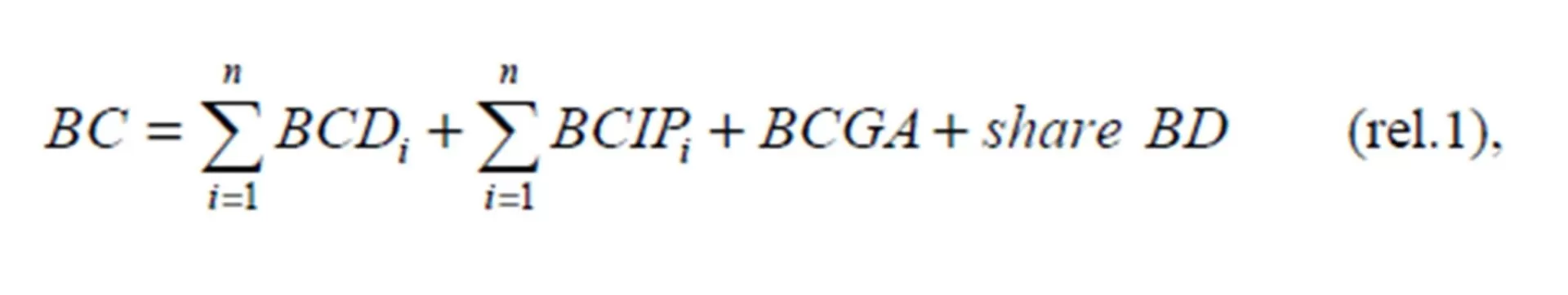 where: BC = the budget of costs; BCDi = the budget of direct expenses of the production sectors; BCIPi = the budget of indirect production expenses of the production sectors; BCGA = the budget of general administrative expenses on the mine level; , is the number of production sectors; the share of BD = the share pertaining to the company from the budget of sales. We should mention that, at present, for the selling of the coal production, the mines subordinated to the mother company do not have their own budget for sales.