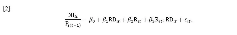 In model [2], it was assumed, in contrast to a study by Christensen, that R means the return on equity (ROE) ratio. Therefore, if a company reported loss for the year and if the value of its net assets was negative, the calculation of that variable was abandoned because it would lead to economic misinterpretation.