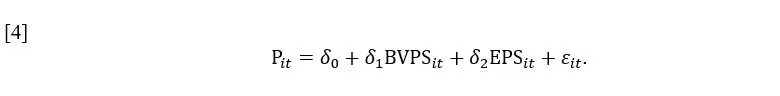 where P is the share price 6 months after the year-end, BVPS is the book value per share, and EPS is the earnings per share. A higher positive coefficient on earnings per share in the post-adoption period indicates increased value relevance of reported earnings after IFRS adoption. This would be consistent with a post-IFRS increase in accounting quality (Christensen, Lee, Walker & Zeng, 2015).