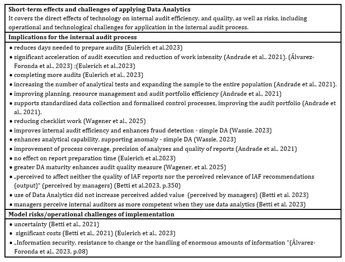 Table 2: Research results on short-term effects and challenges of Data Analytics use in internal auditing