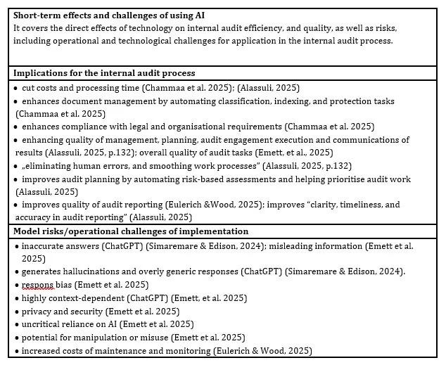 Table 5: Research results on short-term effects and challenges of AI use in internal auditing