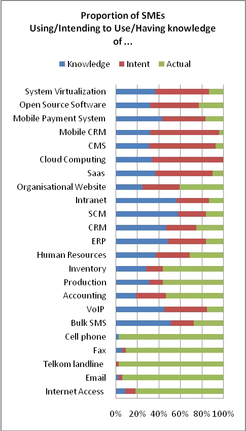 It would be interesting to see the results of this study on a larger sample, encompassing more industries and regions within South Africa. Many of the SMEs in the sample showed an intent to adopt and use more advanced ICTs in the near future.