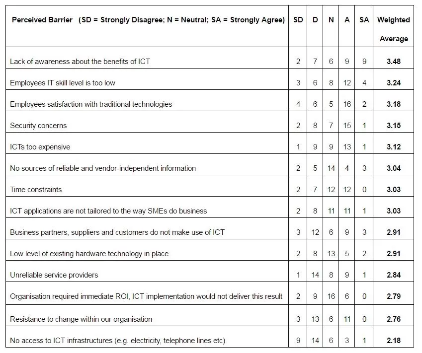 Table 1: Perceived Critical Barriers to ICT Adoption click on the table to see it full size