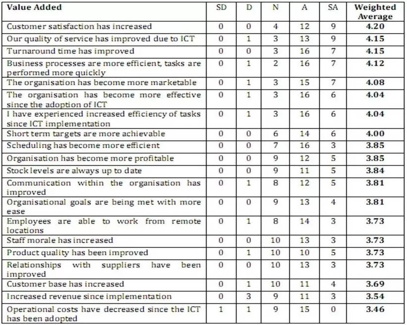 Table 2: Perceived Value through ICT Adoption