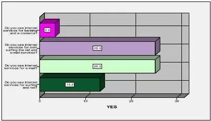 Figure 4 indicates that the majority (25.3%) of respondents use internet for both surfing the net and e- mail services. Respondents indicated that they mainly surf the internet for research and educational purposes and e-mail for business purposes.