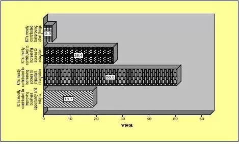 Table 8 indicates that the majority of respondents use ICT in the education, banking sectors as well as in searching for employment opportunities. Figure 6 below gives a summary of ICT benefits as indicated by the respondents.