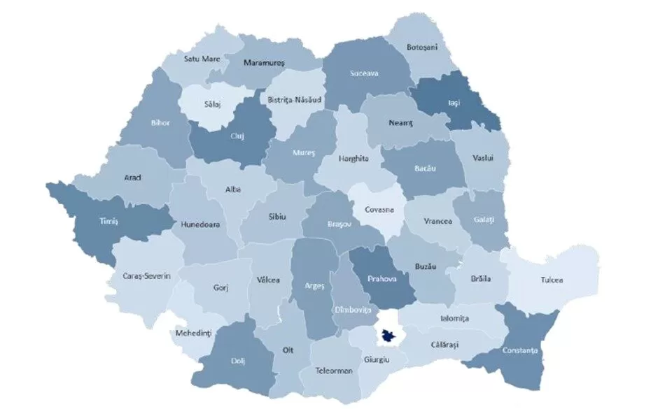 It must be noted that the white color surrounding Bucharest is actually the county of Ilfov. Bucharest and Ilfov have a metropolitan PSAP that receives all calls generated from their regions, and that is why this white color will always be seen around Bucharest when referring to calls.