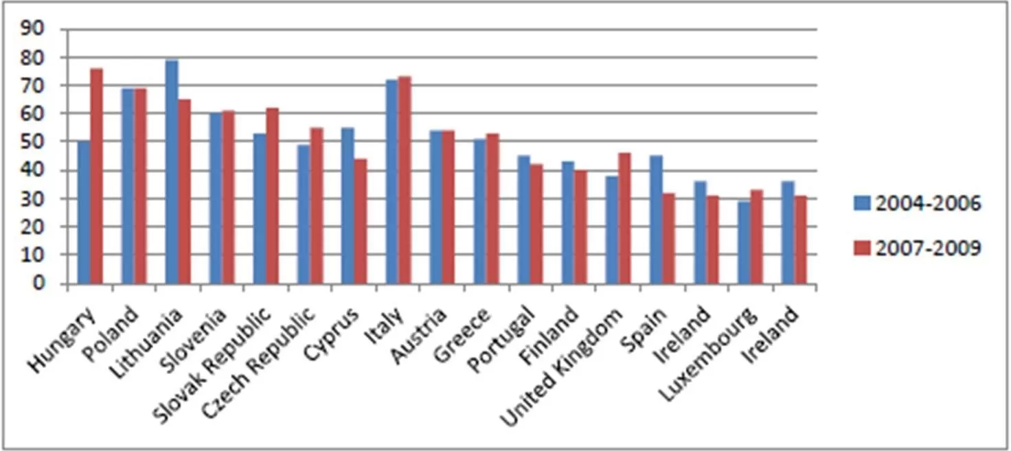 Fig 2. The Share of Multilateral Aid in the Czech Republic in 2004-2009 Compared with Selected EU Member States (in % of total ODA)